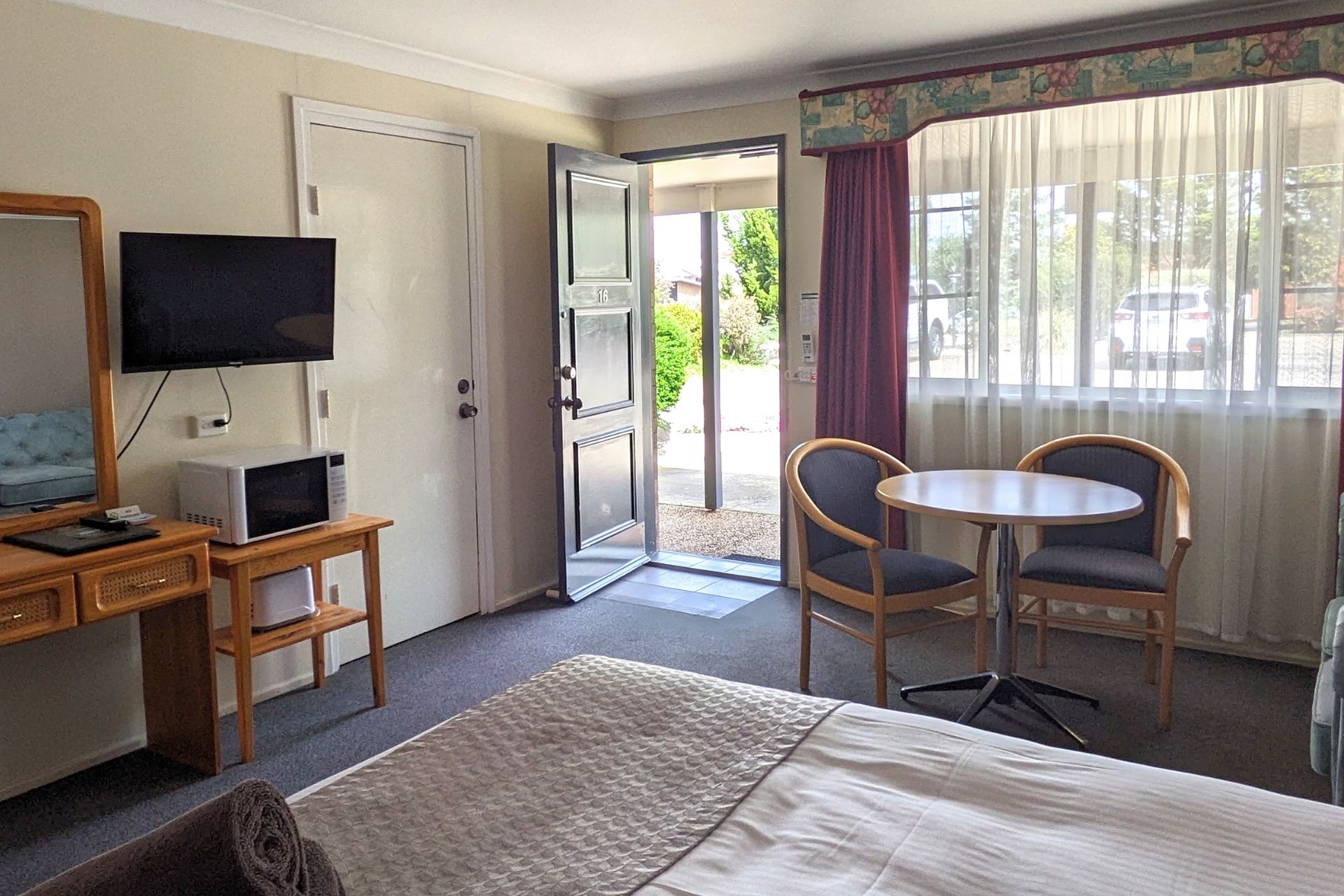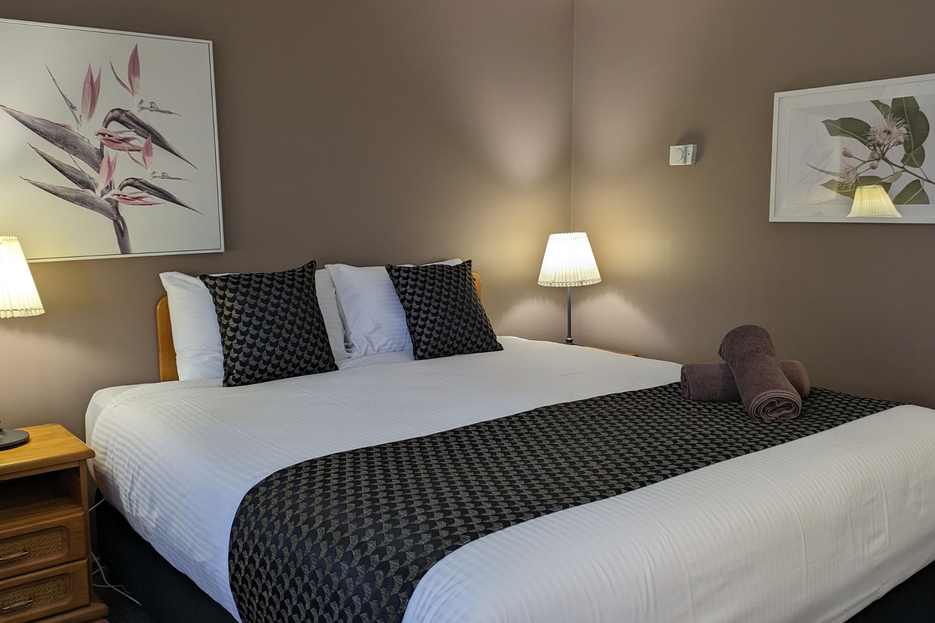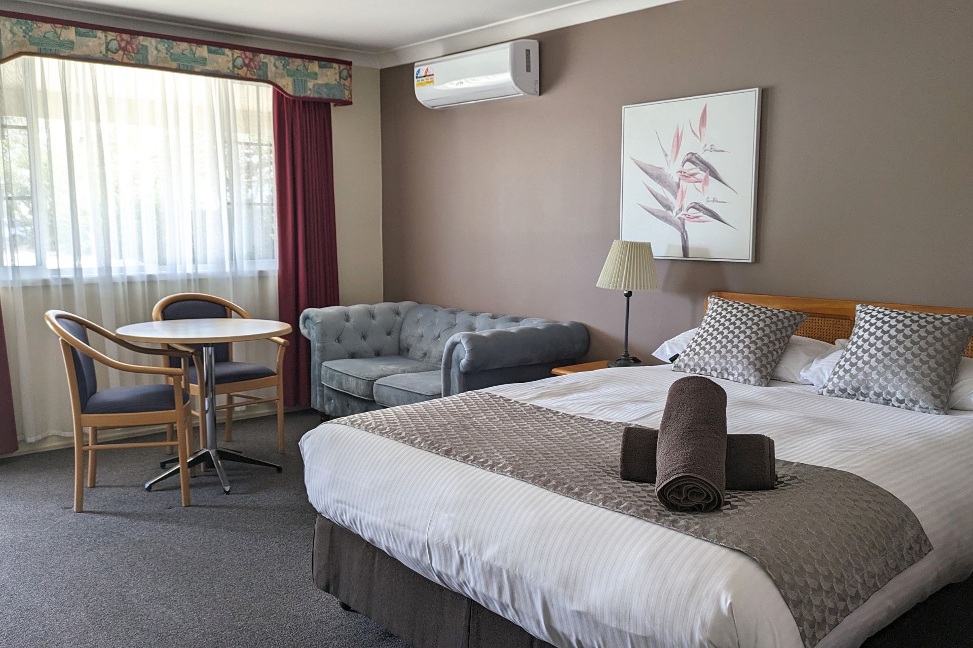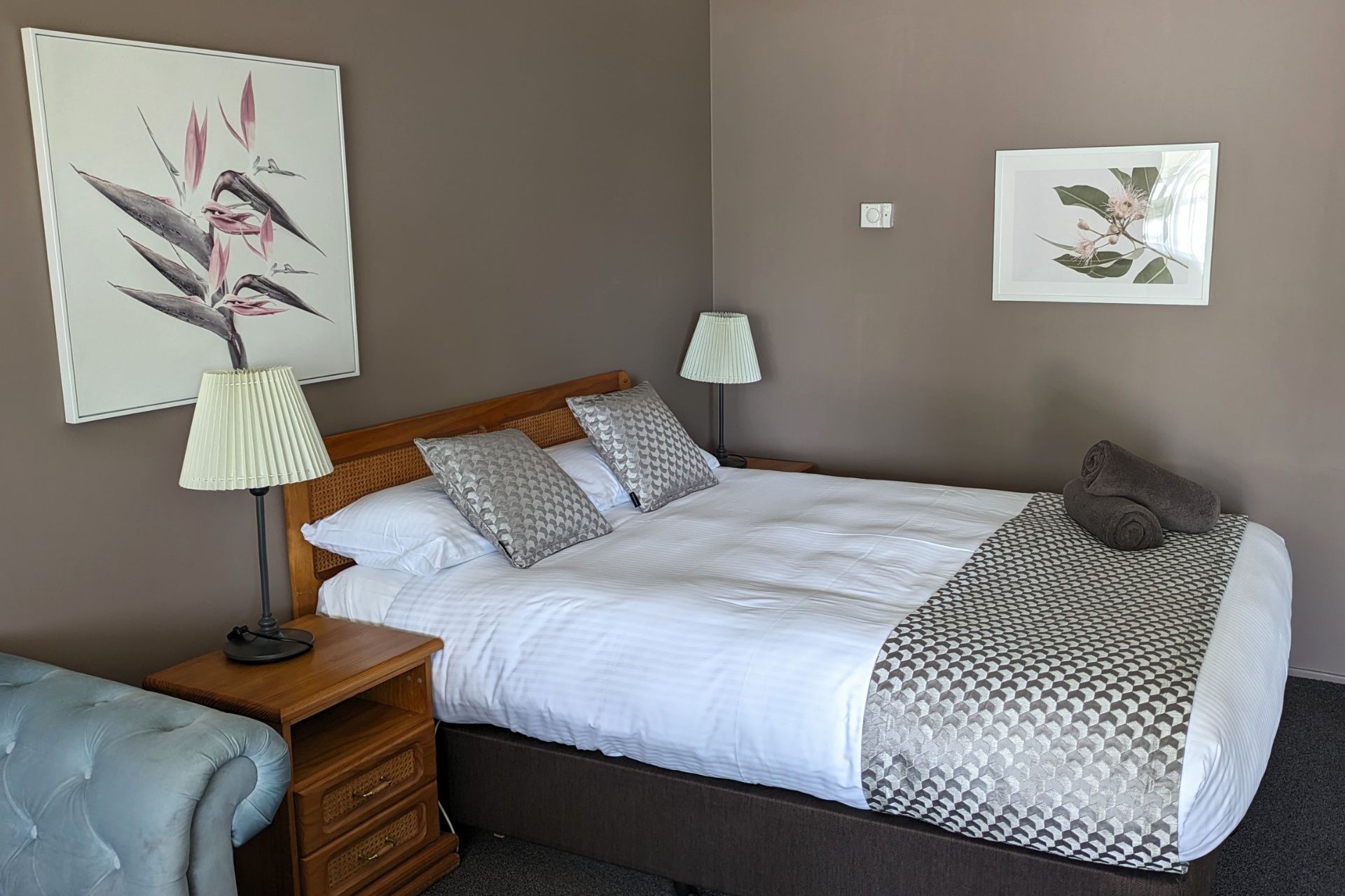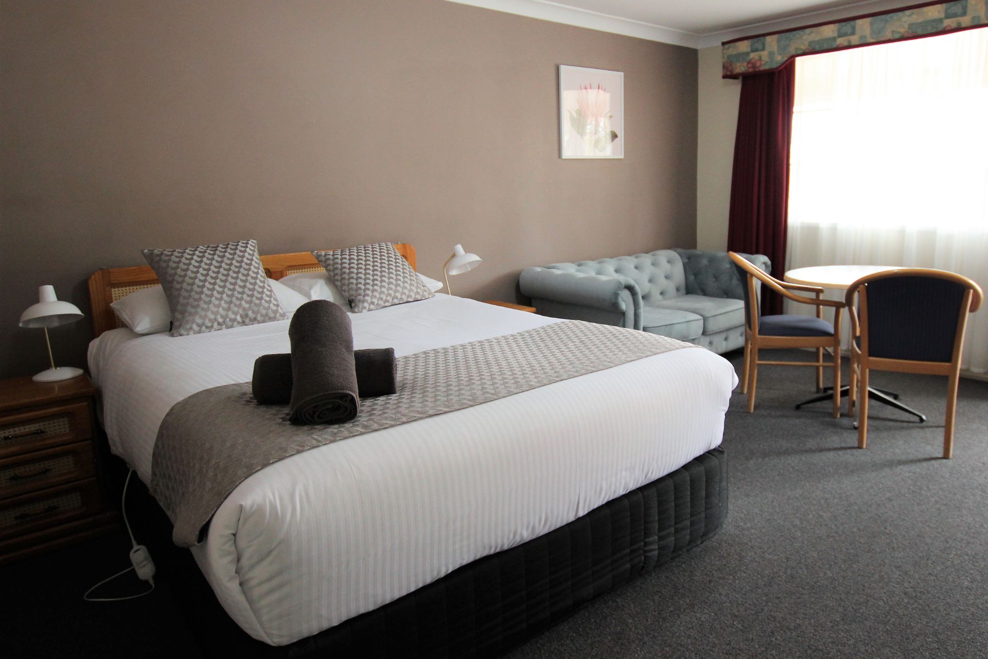 Our Queen Rooms feature a queen-sized bed, providing ample space and comfort for solo travellers or couples.